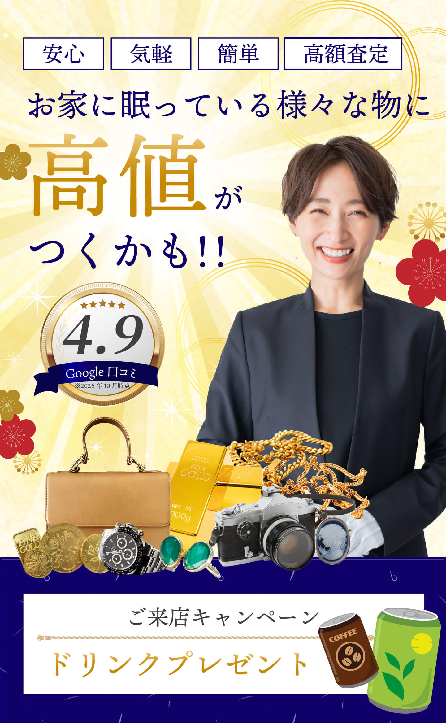 買取大吉 駒込駅東口店 (以下「当社」)は、以下のとおり個人情報保護方針を定め、 個人情報保護の仕組みを構築し、全従業員に個人情報保護の重要性の認識と取組みを 徹底させることにより、個人情報の保護を推進致します。